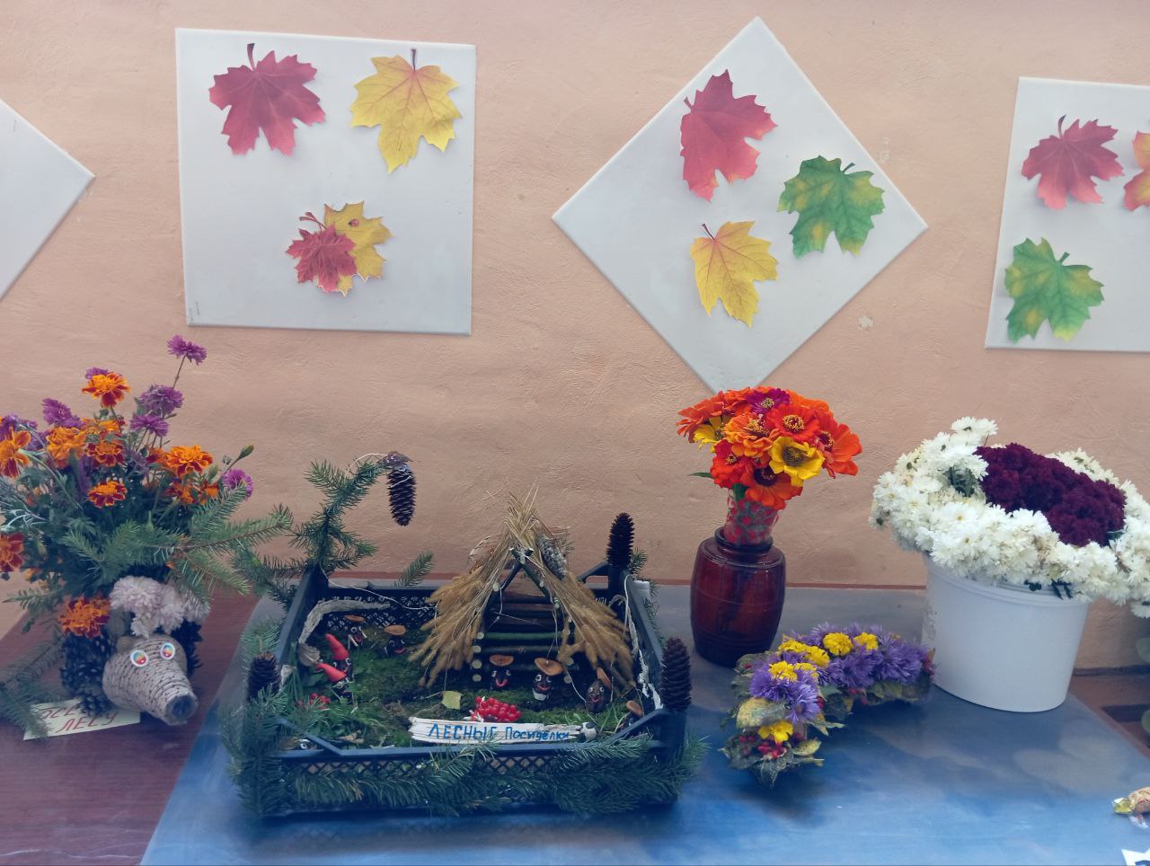 4.10.2025г Прошёл конкурс осенних букетов и поделок «Чудо-чудное, диво-дивное. В нем приняли участие Афтенюк Л., Малышевы М., Ваня и Никита, Ошарова И. и Изотова Аглая, Плыгун Л, Антон и Саша, Титовы Е., Влада и Эдик. Общим голосованием определён победитель. Это композиция «Осенние посиделки», которую создали Плыгун Антон и Саша под руководством Афтенюк Л. Остальные участники получили поощрительные призы. Спасибо всем за удовольствие от такой красоты!