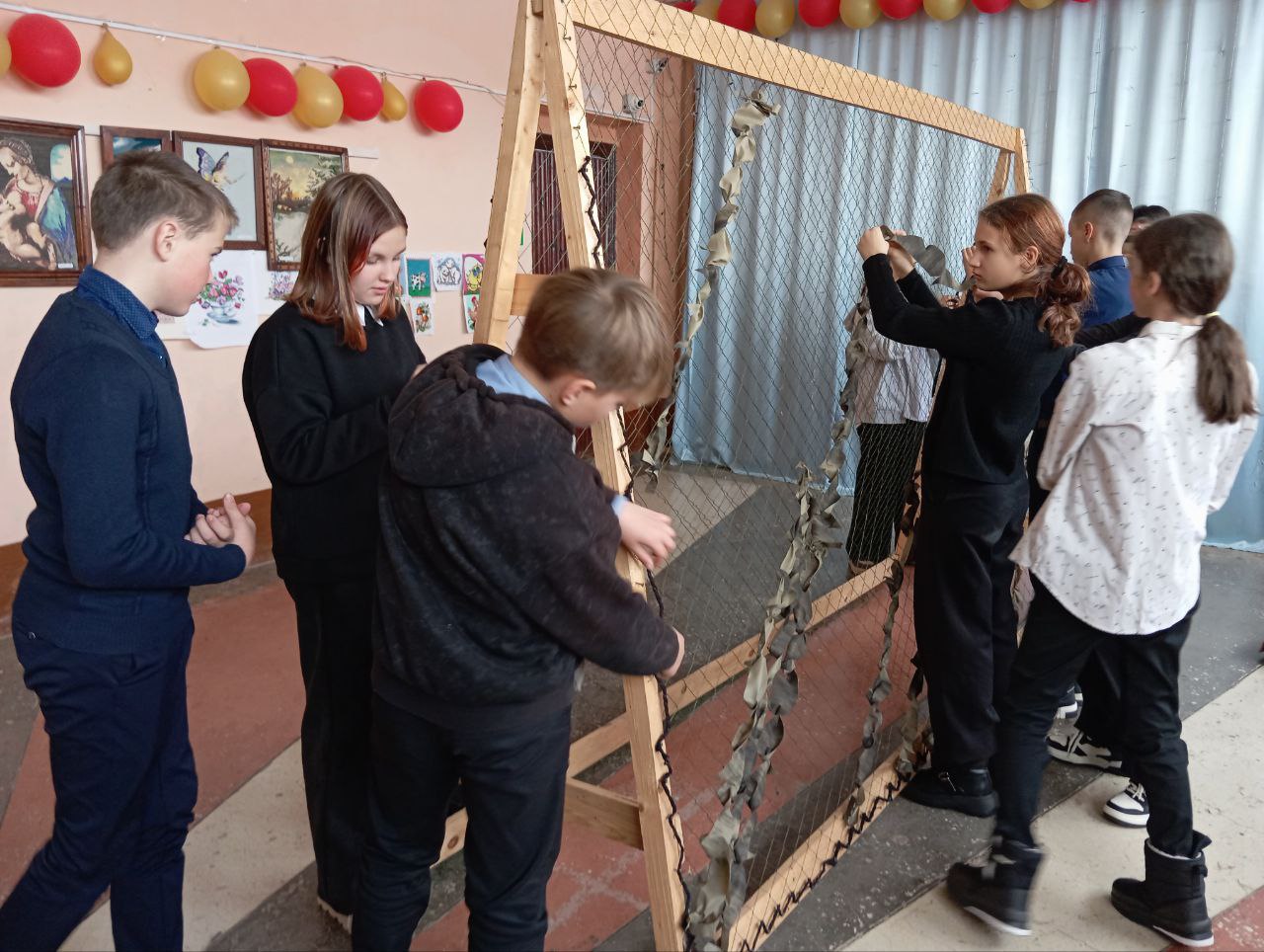 Ирхина Ю. Н., классный руководитель 6 класса, рассказала ребятам о том, что в настоящее время плетение маскировочных сетей для СВО является одной из важных задач добровольцев и волонтеров. Потребность в сетях велика. Поэтому их сейчас плетут повсеместно.